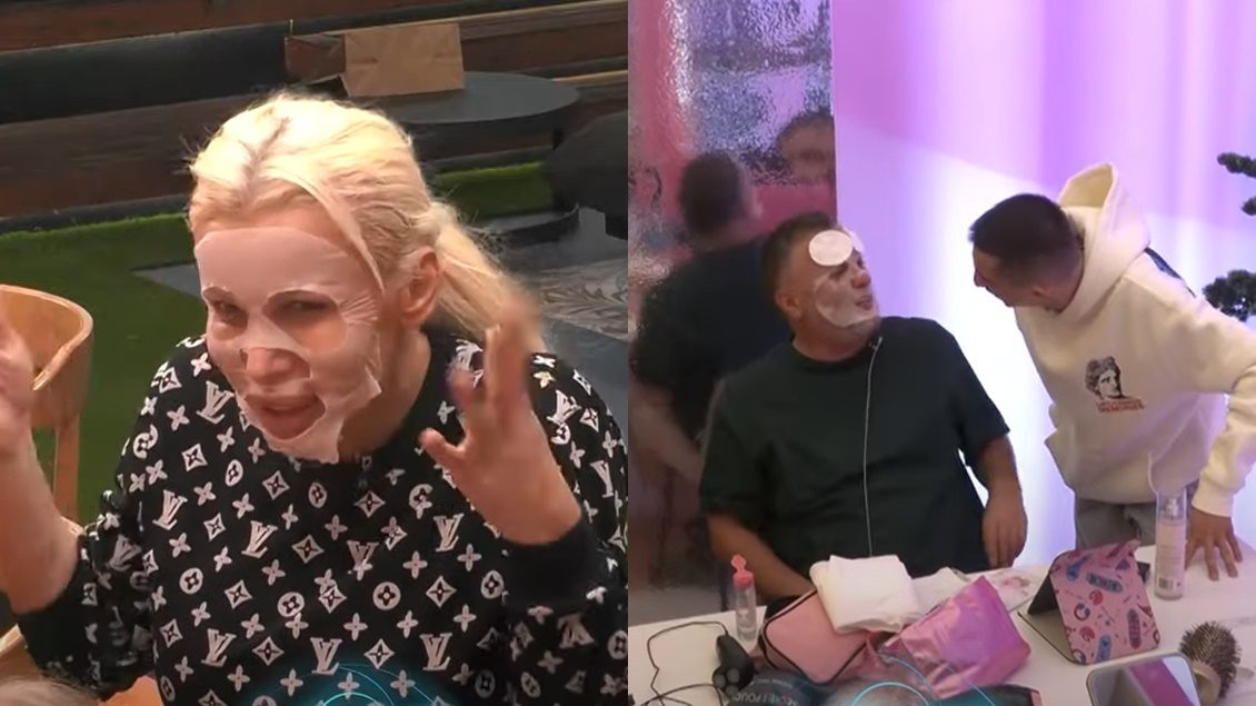 Në dhomën e grimit, Buci e vendos një maskë dhe pyet Ganiun nëse po i duket si Edona.