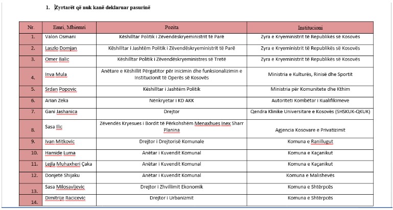 AKK njofton se këta 14 zyrtarë të shtetit nuk e kanë deklaruar pasurinë