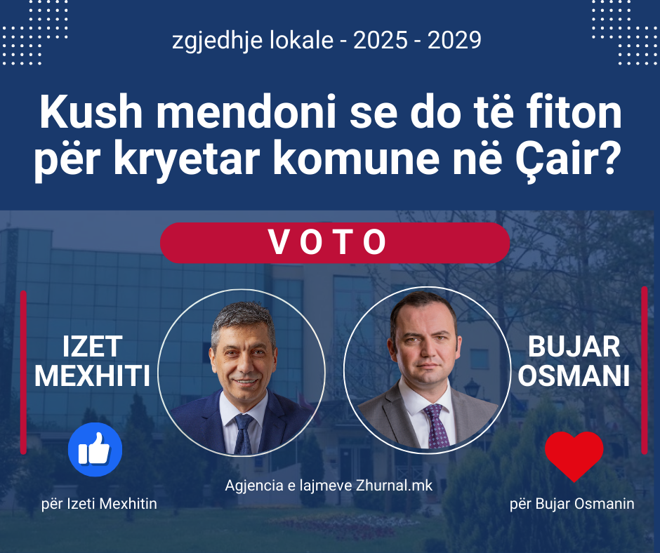 Shkup, 28 gusht – Në një anketë të zhvilluar në profilin zyrtar në Facebook të Agjencisë së Lajmeve Zhurnal, qytetarët janë pyetur se kush mendojnë se do të fitojë garën për kryetar të Komunës së Çairit – Izet Mexhiti apo Bujar Osmani.