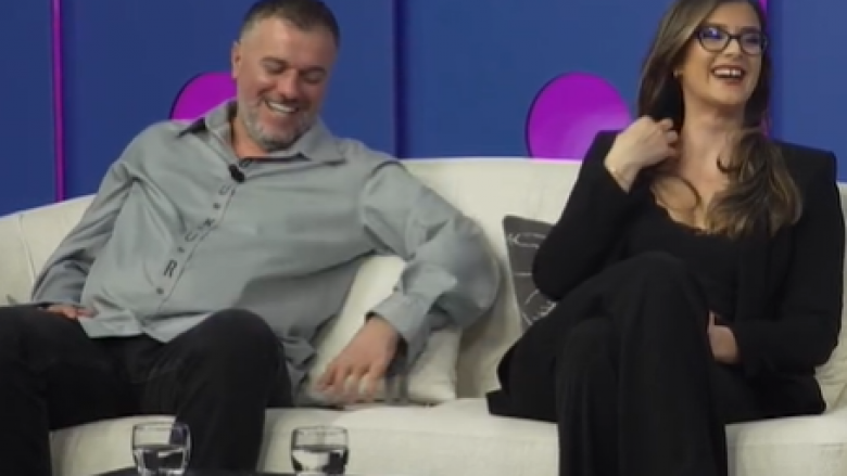 Në një moment, moderatorja Genta Cana ia përmend hyrjen e Veronës në BBVK dhe pjesën për televizor.