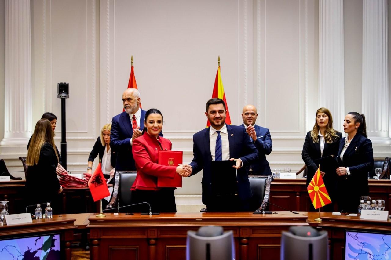 Shkup, 14 nëntor – Ministri i Ekonomisë, Kreshnik Bekteshi në kuadër të konferencës së dytë ndërqeveritare mes Maqedonisë së Veriut dhe Shqipërisë, me koleget ministra Belinda Balluku, ministre e Infrastrukturës dhe Energjetikës të Shqipërisë dhe Edona Bilalli, ministre e Shtetit për Mbrojtjen e Sipërmarrjes të Shqipërisë, nënshkuan dy Memorandume bashkëpunimi.