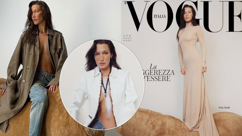 Bella Hadid dukej e pabesueshme, teksa pozonte mbi një kalë, teksa pozonte për ballinën e “Vogue Italia”.