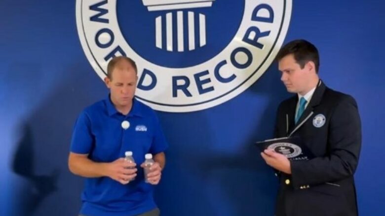 Thyesi i rekordeve botërore të Guinnessit, David Rush, vuri në provë aftësitë e xhonglimit për të thyer rekordin për kohën më të shpejtë për të bërë 10 goditje të alternuara të një topi tenisi tavoline në kapakët e shisheve.