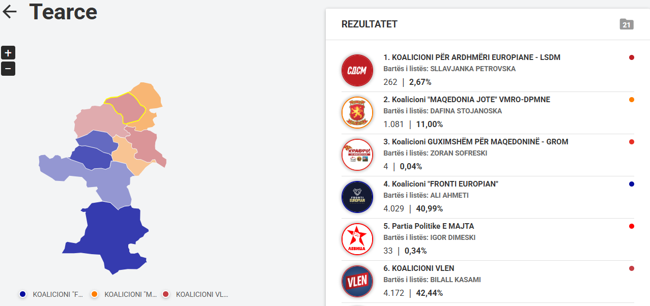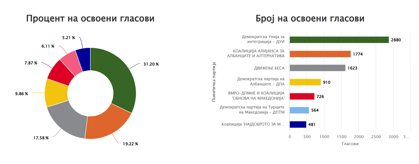 VLEN ka marr 4.172 vota, Fronti Evropian 4.029 vota. Ndërkaq, VMRO 1.081 vota. Nga këto rezultate qartësisht mund të kuptojmë se përkrahja e cilës parti politike mund ta thellojë diferencën më shumë, ta sigurojë fitoren ose t’i përmbys fituesit e zgjedhjeve të fundit.