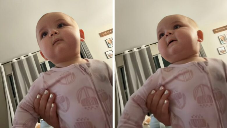 Në një video virale në TikTok që ajo ndau, vajza e saj shtatë muajshe, Blakely, qëndron qetë duke pritur babanë.