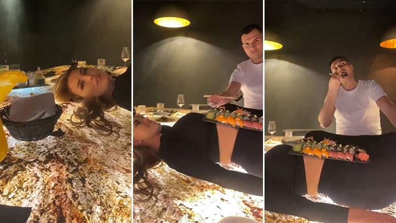 Genta Ismajli publikon një video me burrin e saj në TikTok, ku ai ushqehet nga një pjatë e servuar mbi trupin e saj në tavolinë