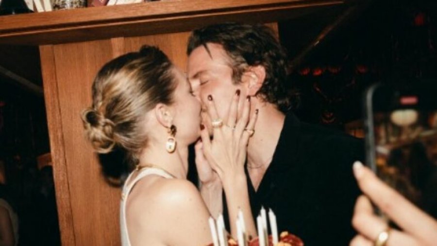 Në imazhin e ndarë me 77 milionë ndjekës, ajo shihet duke e puthur me dashuri aktorin 50-vjeçar pranë tortës së ditëlindjes, ndërsa mbante një unazë ari në gishtin e martesës, çka ka nxitur spekulime për një fejesë të mundshme.