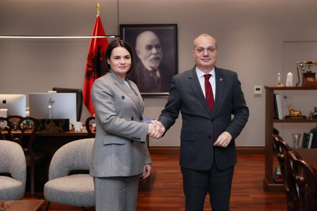 Ministri për Evropën dhe Punët e jashtme, Igli Hasani priti në takim kryetaren e opozitës së Bjellorusisë, Sviatlana Tsikhanouskaya, e cila po viziton vendin tonë në kuadër të Samitit “Pact of Free Cities” të organizuar nga Bashkia Tiranë.