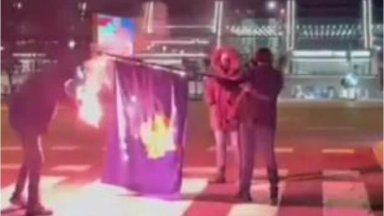 Jo shumë kohë më pas, në internet filloi të qarkullonte një video ku shihen disa persona duke djegur mbrëmë (e mërkurë) flamurin e Kosovës para ‘Sava Center’.