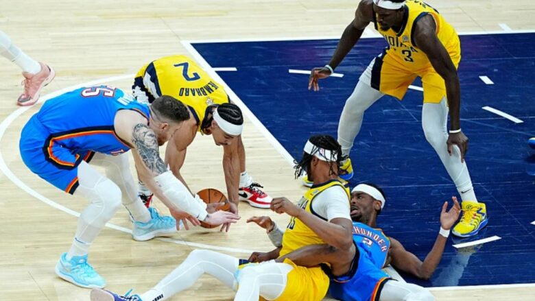 Basketbollistët e Indiana Pacers mposhtën Oklahoma Cityn me rezultatin 108:91 dhe kështu barazuan ndeshjen në 3-3 në serinë finale të ‘play-off’-it të NBA.