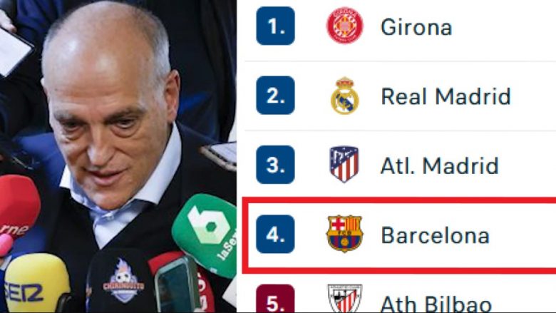Barcelona ka rënë në vendin e katërt në La Liga, 11 pikë pas Gironës së vendit të parë. Real Madridi është gjithashtu 10 pikë mbi Barçën, ndërsa Atletico gjendet mbi ta për diferencë golash.