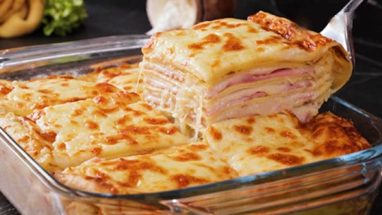 Ju shkrihen në gojë: Krepa të pjekura me djathë, proshutë dhe salcë beshamel