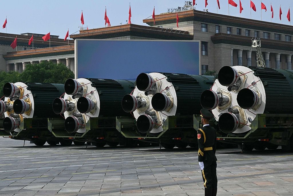 Në paradën ushtarake në vijim që përbëhet nga 45 formacione, Kina demonstroi për herë të parë forcën e saj bërthamore tokësore, detare dhe ajrore bashkërisht. Formacioni i parë i raketave bërthamore përbëhet nga raketa me rreze të gjatë të lëshuar nga ajri JL-1, raketa ndërkontinentale të lëshuara nga nëndetëset JL-3, raketa ndërkontinentale të lëshuara nga toka DF-61 dhe raketa e re ndërkontinentale e lëshuar nga toka DF-31BJ.