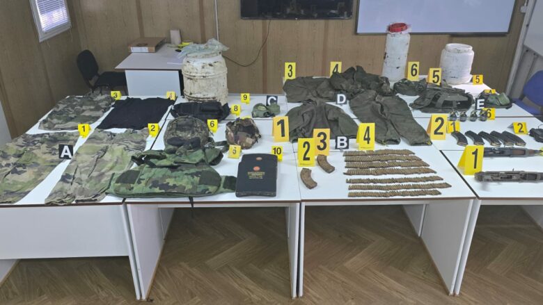 “Gjatë kontrollimit janë gjetur tre kavanozë (bure) plastikë të groposur në dhe, në të cilët kishte pasur uniforma ushtarake, armë AK47, granata dore dhe fishekë. Fillimisht një bure është gjetur nga njësitet e DRP Mitrovicë Veri, e më pas nga Njësia për Trajtimin e Mjeteve Eksplozive janë gjetur edhe dy bure të tjera”, thuhet në njoftimin e bërë për media.