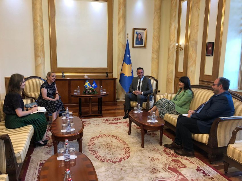 Kryetari i Kuvendit Glauk Konjufca, pret në takim ambasadoren e Suedisë në Kosovë, Karin Hernmarck Ahliny.