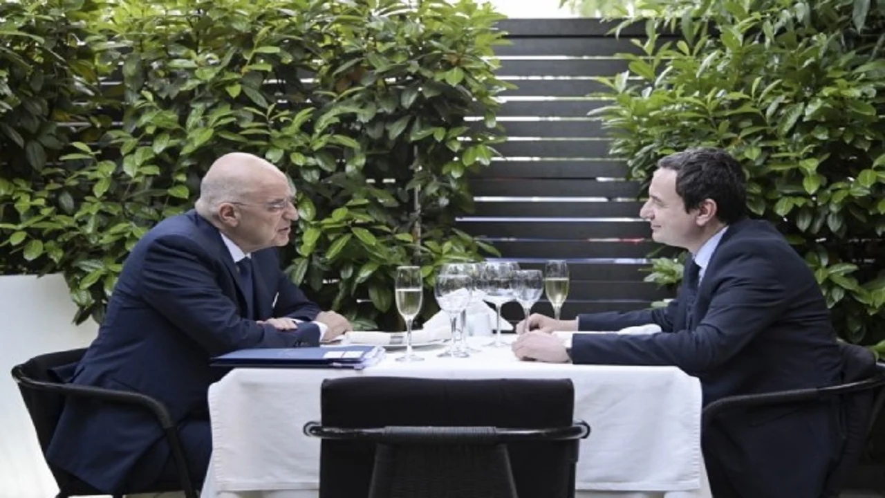 Kurti foli për darkën me ministrin e Jashtëm grek, Nikos Dendias, i cili dje ka mbërritur për një vizitë zyrtare, ku ka takuar edhe presidenten Vjosa Osmani.