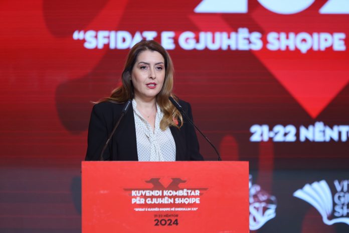 “Sot, në datën 22 nëntor, kujtojmë një prej momenteve më domethënëse të historisë sonë kombëtare, “Kongresin e Manastirit*, ngjarjen që vendosi alfabetin e gjuhës sonë amtare dhe hodhi themelet e një bashkimi kulturor e kombëtar. Kongresi i Manastirit, mbajtur më 1908, ishte një akt vizionar i Rilindjes Kombëtare, një shprehje e qartë e vullnetit të shqiptarëve për të ruajtur identitetin dhe për të forcuar lidhjet mes nesh si komb. Sot, 116 vite më pas, ne vijojmë të përmbushim atë mision përmes veprave të tilla si ky Fjalori i Madh i Shqipes që po prezantojmë sot, një monument gjuhësor, shkencor dhe kulturor që i shton një faqe të re historisë sonë gjuhësore”, tha ministrja.