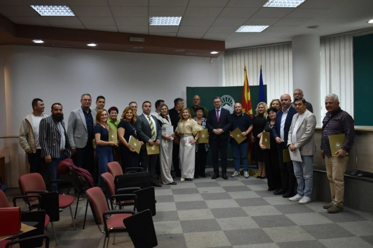 “Qëllimi ynë si Ministri është të inkurajojmë shoqatat të organizojnë sa më shumë manifestime lokale, panaire dhe festivale, ku do të promovohen produktet tona maqedonase. Krahas ushqimit, do të mund të theksohen edhe fermat e vogla, prodhuesit dhe kooperativat. Pikërisht ky lloj ngjarjesh do të nxisë edhe ekonominë vendore,” theksoi ministri gjatë ndarjes së kontratave.