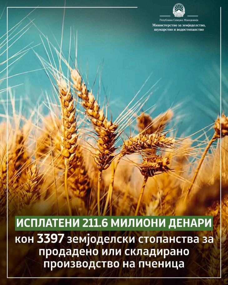Janë paguar tërësisht 2116,6 milion denarë në 3.397 njësi bujqësore të regjistruara në RVEB. Shuma maksimale e grurit që është i pranueshëm për mbështetje financiare nga masa është 5.000 kilogramë për hektar të regjistruar, ndërsa shuma e përkrahjes është tre denarë për kilogram.