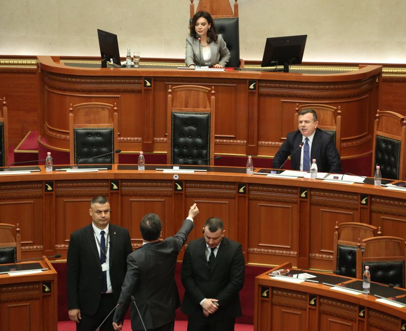 Flamur Noka tentoi të godiste ministrin Balla, por u ndal nga gardistët e për këtë arsye edhe u përjashtua nga seanca.