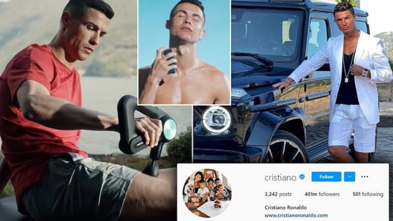 Me 400 milionë ndjekësit e tij aktualë, të ardhurat e Ronaldos rriten në 1,720,000 funte (2,043,388 euro) – mbi trefishin e pagës së tij javore prej 480 mijë funtesh (570 mijë euro) në Manchester United.