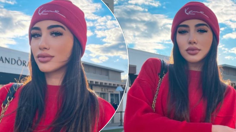 Reperja pozoi në disa foto ku shihet e veshur me një bluzë të kuqe kombinuar me një kapele me të njëjtën ngjyrë, ndërsa pamjen përshtati me një çantë nga marka “Louis Vuitton”.