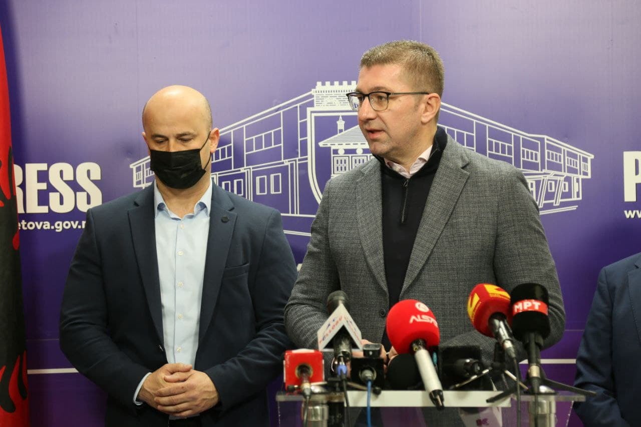 “Për mua problemi më i madh është se kjo Qeveri e LSDM-së dhe BDI-së nuk tërhiqet pas disfatës së LSDM-së në zgjedhjet e kaluara lokale dhe disponimi i dukshëm në opinion është që kjo Qeveri të largohet dhe se vendi po ecën në drejtim të gabuar. Ky është një problem më thelbësor. Ndryshe, nëse flasim për Komisionin për zgjedhje dhe emërime brenda Kuvendit, ai ka deputetë. Me sa kam informacion, i fundit nga sot, këtu është një nga ata 120 deputetë, Parlamenti ka 120 deputetë, nuk është shpërbërë, nuk ka deputet që mungojnë, ka qenë një por e gjetën. Pra, edhe ai komision ka një numër të mjaftueshëm deputetësh dhe kryetari i Kuvendit duhet të inkurajohet që të caktojë mbledhjen e komisionit. Nëse duan të gjykojnë gjyqtarë kushtetues partiakë, të vendosin dekrete partiake, nëse duan të jenë anëtarë të organeve rregullatore, më falni, nuk do të pajtohem dhe do të bëj gjithçka që kam për të mos lejuar. E inkurajoj kryeparlamentarin Talat Xhaferi që ta caktojë atë seancë siç bën me komisionet e tjera në Kuvend. Më besoni, Kuvendi është i kompletuar, së paku tani për tani, me këta 120 deputetë”, tha Mickoski.