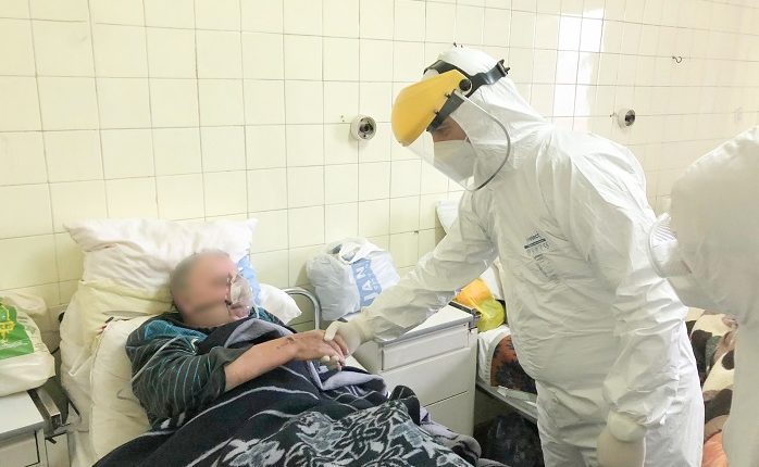 Ministri Sali me skafandër viziton të infektuarit me koronavirus në Spitalin e Velesit