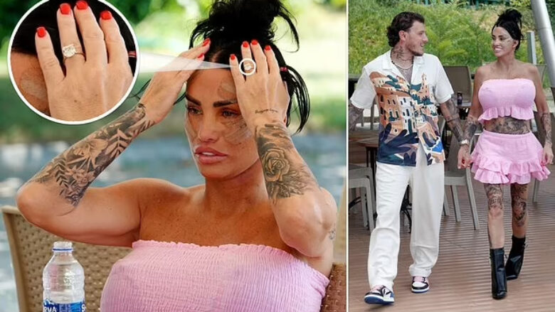 Katie Price ka nxitur spekulime se mund të jetë fejuar me të dashurin e saj, JJ Slater, pas një romance të furishme gjashtëmujore, që do të ishte fejesa e saj e nëntë.