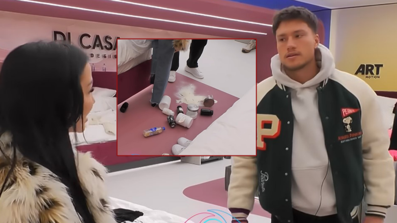 Me një veprim të papritur, ajo hodhi në tokë të gjitha paketimet e proteinave që ai konsumon rregullisht, ndërsa një prej tyre u thye, duke shpërndarë pluhurin nëpër dysheme.