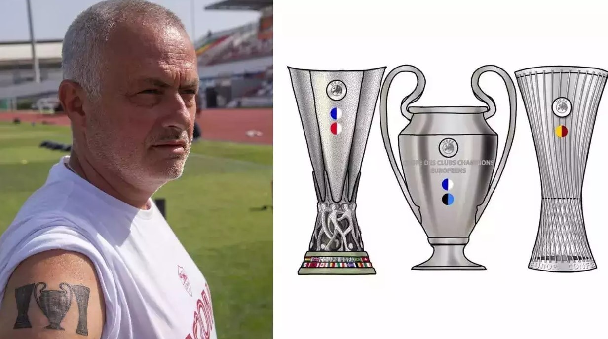 ‘Special One’, në krahun e tij ka bërë tatuazh kupën e Ligës së Kampionëve, Ligës së Evropës dhe Ligës së Konferencës, të cilën e fitoi së fundmi me Romën.