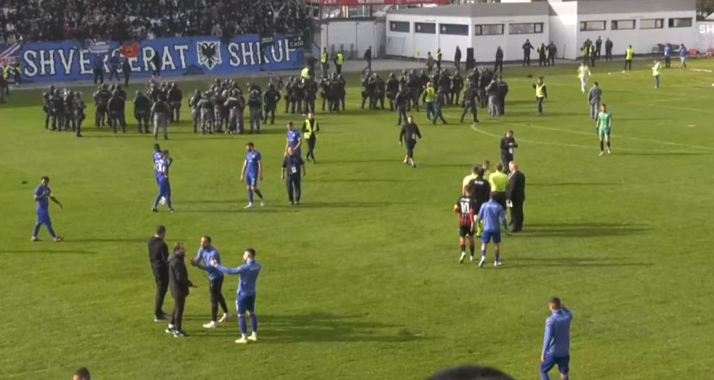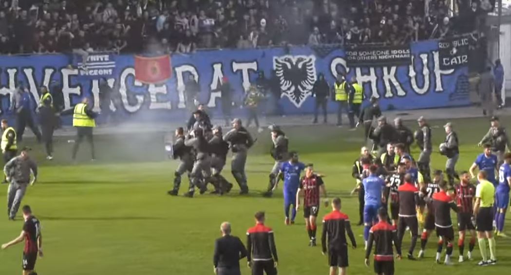 Ndërpritet ndeshja mes Shkupit dhe Shkëndijës së Tetovës. Pas golit të shënuar nga Shkëndija disa nga tifozët e Shkupit u futën në fushë dhe filluan ti sulmojnë futbollistët e Shkëndijës…Për të qetësuar situatën ndërhynë edhe forcat speciale…