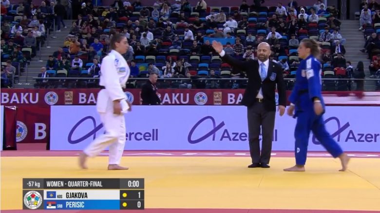 Xhudistja jonë, Nora Gjakova ka fituar edhe luftën e tretë dhe ka siguruar kalimin në gjysmëfinale në Grand Slamin që po mbahet në Baku të Azerbajxhanit.