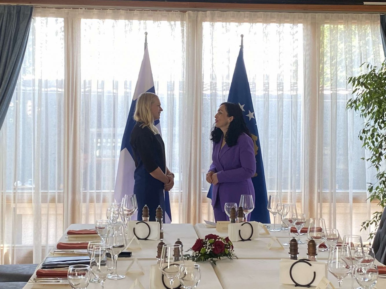 Presidentja e Kosovës, Vjosa Osmani, ka shtruar drekë për ministren e jashtme të Finlandës, Elina Valtonen, raporton Ekonomia Online.