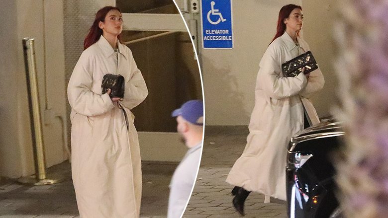 Dua Lipa ishte veshur me një pallto të gjatë të bardhë të premten ndërsa po largohej nga “Sunset Tower Hotel” në shiritin e perëndimit të Hollywoodit.