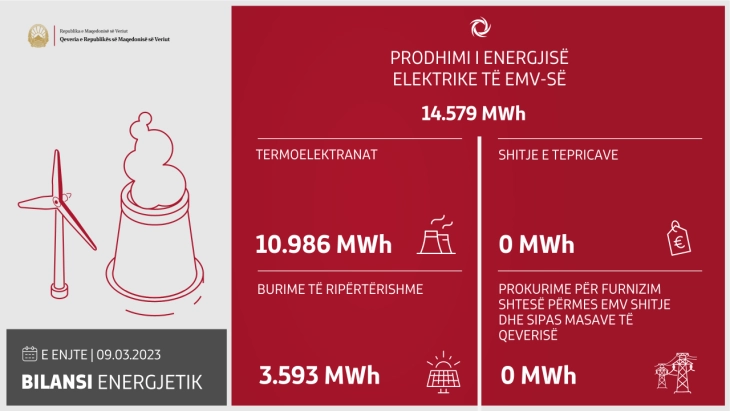 Në termoelektranat janë prodhuar 10.986 MWh, ndërsa në hidroelektranat dhe në Parkun e Erës Bogdanci janë prodhuar 3.593 MWh.