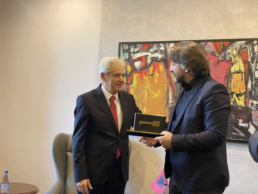 Me këtë rast, kryetari Rama i ka dhuruar kryetarit të BDI-së “Çelësin e Qytetit”.