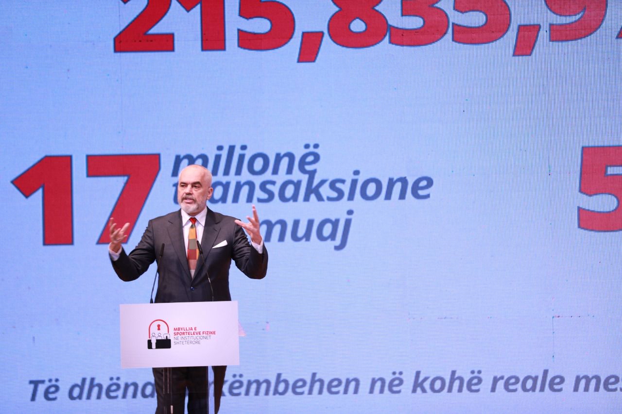 Nuk do të ketë më zyra më 1 maj, por do të mbyllen për të hyrë njerëz nga jashtë brenda, por brenda do të vijojë puna për shërbimin ndaj qytetarëve që i gjithë procesi i aplikimeve të bëhet me sukses dhe askush të mos e pengojë. Unë dua të them që me këtë sistem sot, kemi mundësi ta çojmë në një nivel tjetër marrëdhënien mes qytetarëve dhe shteteve dhe kemi mundësi që ta bëjmë Shqipërinë vendin ku fjala shërbim të marrë kuptimin e vet më të plotë dhe më kuptimplotë. Sistemi është i gjithi gati”, tha Rama.
