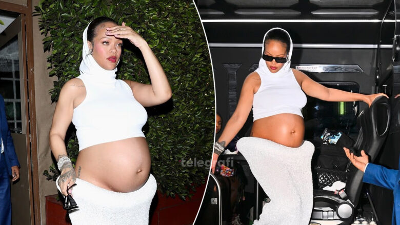 Rihanna ka tërhequr vëmendjen me një paraqitje unike gjatë shtatzënisë, teksa u fotografua duke drekuar në restorantin e saj të preferuar në Santa Monica.