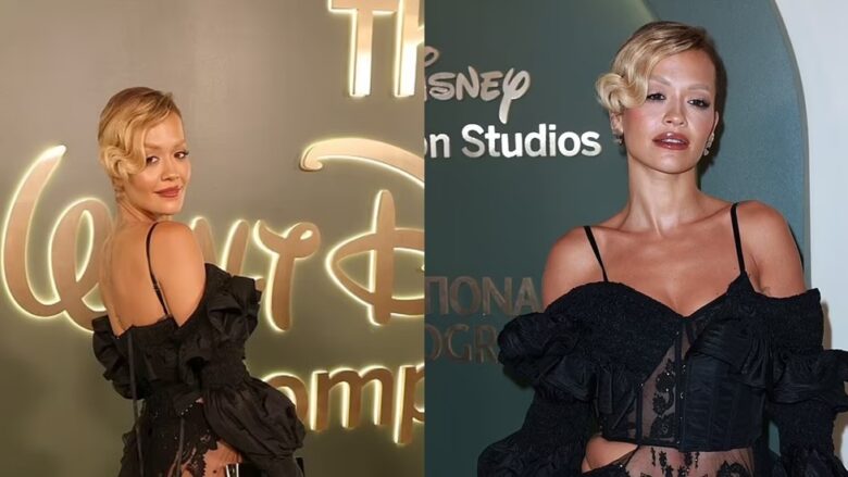Rita Ora mori vëmendje kur mbërriti në festën e kompanisë “Walt Disney”, të mbajtur në Qendrën e Muzikës në Los Angeles të dielën në mbrëmje.
