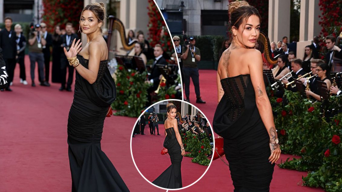 Rita Ora mahniti me një fustan të zi teksa ecte në tapetin e kuq në ‘Theatre Royal Drury Lane’ për shfaqjen botërore të “Vogue” të enjten.