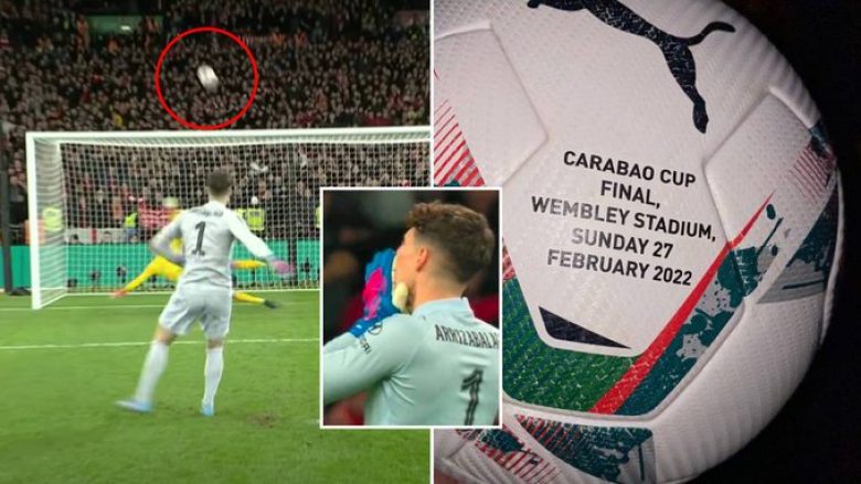 Një tifoz i Liverpoolit brenda Wembley arriti të kapte topin e hedhur nga penalltia e pasaktë e portierit të Chelseat, Kepa Arrizabalaga dhe e mori atë në shtëpi.