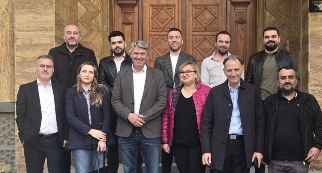 Në foto krahas Selës shihen anëtarët e kryesisë së partisë e cila është pjesë e opozitës në Kuvend me BDI-në dhe parti tjera politike.
