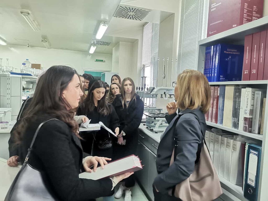 Shkup, 27 mars – Studentët e Fakultetit të Shkencave Mjekësore, të programit studimor – Farmaci, të udhëhequr nga prodekania për arsim Prof. Dr. Nexhibe Nuhiu, shefja e programit studimor Doc. Dr. Arijeta Shabani, mësimdhënësja, Prof. Dr. Arlinda Haxhiu – Zajmi, më 26 mars 2024 e vizituan njërën nga depot më të mëdha të barnave në vendin tonë “MakedoniaLek” dhe fabrikën për prodhimin e barnave dhe preparateve kozmetike dhe galenike “Galafarm”.