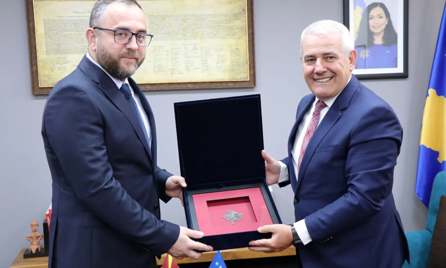 Ministri në detyrë i Punëve të Brendshme, Xhelal Sveçla, ditën e sotme ka pritur në takim Ministrin e Punëve të Brendshme të Maqedonisë së Veriut, Pançe Toshkovski, me të cilin biseduan për bashkëpunimin ndërmjet dy vendeve, me theks të veçantë për zbatimin e marrëveshjes së fundit për pikë-kalimin e përbashkët kufitar Hani i Elezit – Bllacë, bazuar në parimin “Hyrje-Hyrje”, si dhe për pikën Glloboqicë – Jazhincë, ku shumë shpejt, me finalizimin e punimeve teknike, do të fillojë zbatimi i të njëjtit parim.