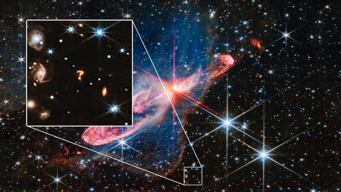 Teleskopi Webb ndriçon informacione rreth origjinës së universit tonë, por shfaqja e këtij objekti misterioz në sfondin e këtij imazhi lë më shumë pyetje sesa përgjigje.
