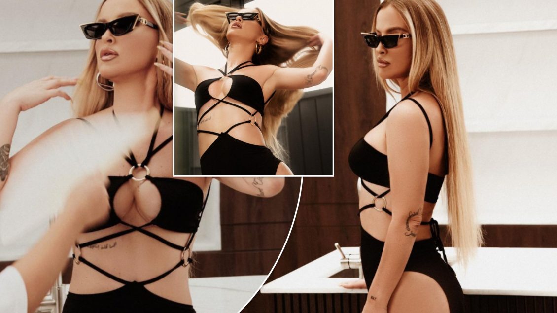 Ajo shfaqet në formë të mahnitshme në një fustan dypjesësh të zi, i cili ia vë në pah hiret trupore.