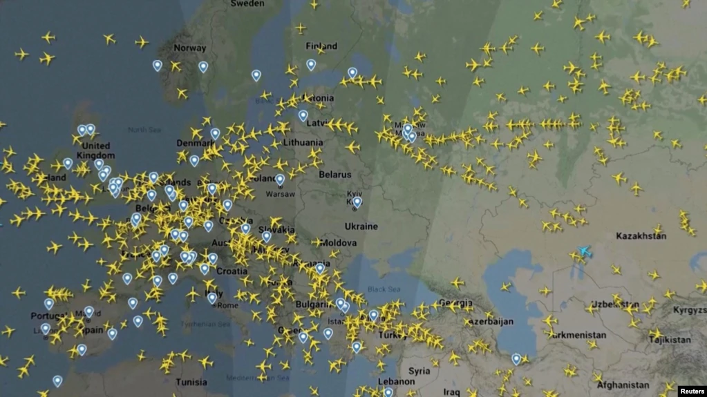 Shërbimi shtetëror i trafikut ajror të Ukrainës njoftoi se ka mbyllur hapësirën ajrore të vendit pas sulmit që nisi Rusia.