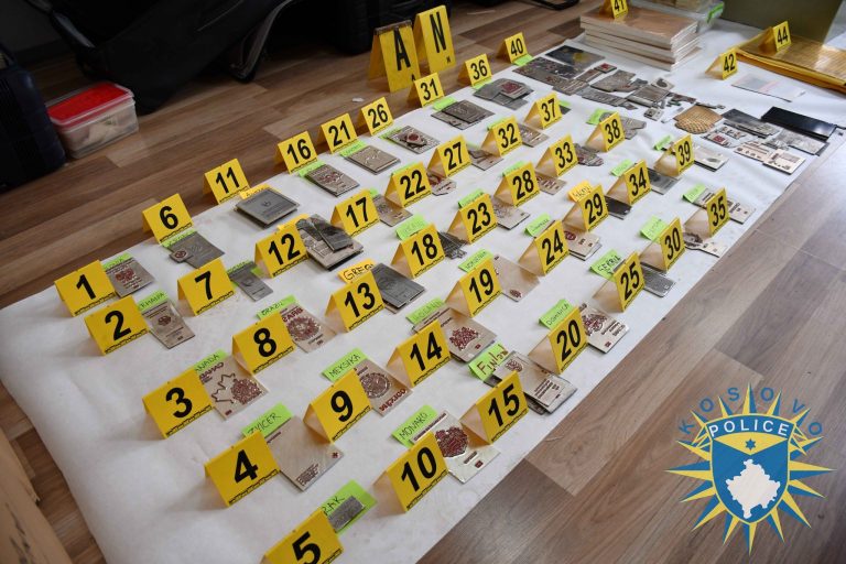 “Policia e Kosovës më 24 janar 2025 ndaloi një automjet në Prishtinë, ku gjeti dokumente të zbrazëta të shteteve të ndryshme të botës. Shoferi me inicialet (F.K.) u arrestua dhe i është caktuar masa e paraburgimit prej 30 ditësh. Pas hetimeve intenzive, u zbulua një shtëpi në Prishtinë që shërbente si laborator i sofistikuar për prodhimin e dokumenteve të falsifikuara, si pasaporta, karta identiteti dhe patentë shoferë. Në bastisje u sekuestruan dëshmi relevante, makina laserike, printerë, mbi 20,000 mikroçipa dhe mijëra dokumente nga 51 shtete të ndryshme të botës. Ky rast po hetohet si “Falsifikim i dokumenteve” dhe “Krim i organizuar” nga Prokuroria Speciale. Policia e Kosovës mbetet e angazhuar në luftimin e krimit të organizuar”, thuhet në njoftim.